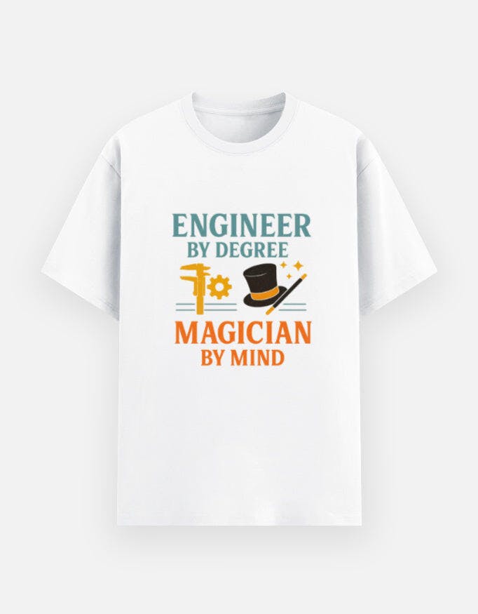 The “Engineer by Degree, Magician by Mind” tee is more than just apparel — it’s a salute to your problem-solving superpowers, those late-night fixes, and the genius moments that make the impossible look effortless.